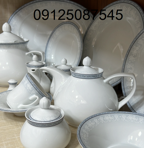 اقلام سرویس : سوپخوری , کاسه , ظرف سالاد , سالادخوری , دیس , بشقاب غذاخوری , بشقاب خورشخوری , پیشدستی , قوری چایخوری , فنجان , نعلبکی , قندان , شکرریز , نمکپاش و فلفلپاش
