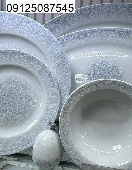 سرویس غذاخوری 102 پارچه ادلین طوسی چینی زرین ایران سری ایتالیا اف