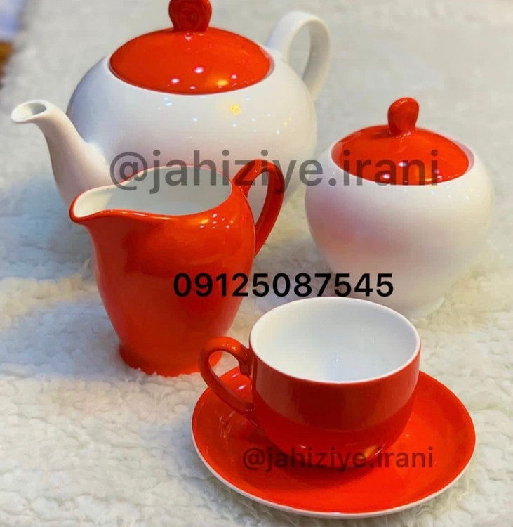 سرویس چایخوری 17 پارچه چینی زرین ایران مدل ایتالیا اف گیلاس قرمز