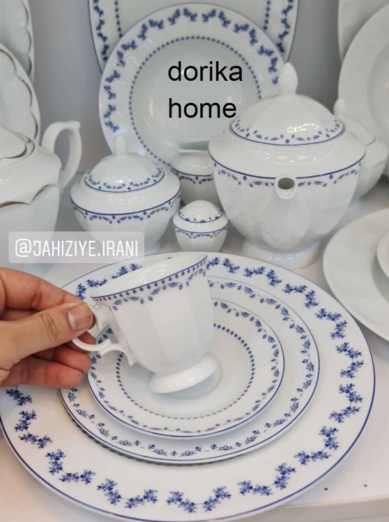 سوپخوری , ظرف سالاد , دیس , بشقاب غذاخوری , بشقاب خورشخوری , پیشدستی , قوری چایخوری , فنجان , نعلبکی , قندان , شکرریز , نمکپاش و فلفلپاش , پیاله , لیوان