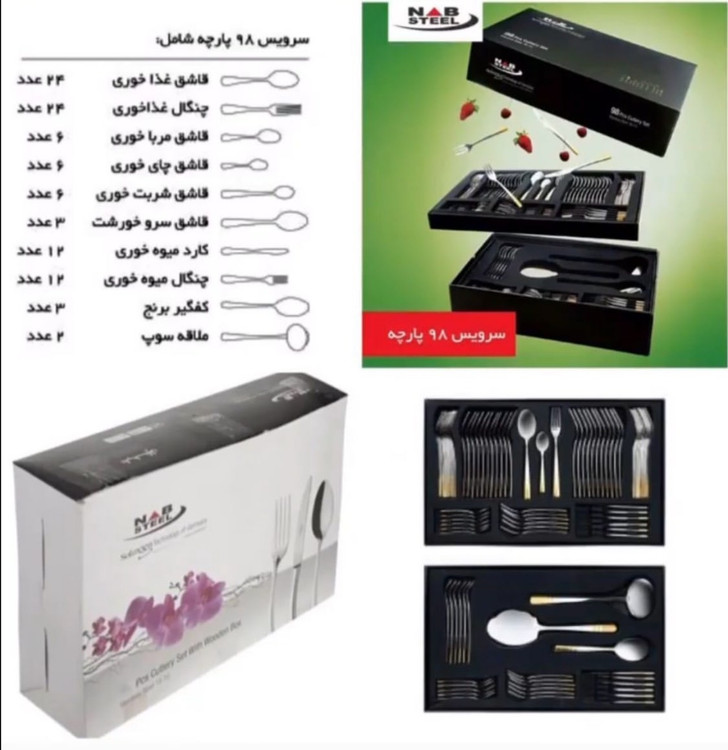 سرویس قاشق و چنگال ناب استیل طرح فلورانس استیل براق