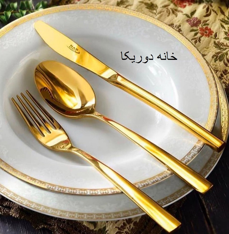 سرویس قاشق و چنگال ناب استیل طرح فلورانس استیل تمام طلایی