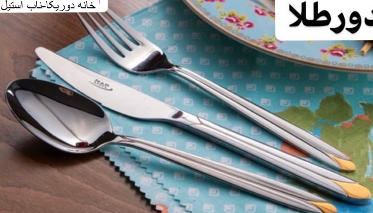 سرویس قاشق و چنگال ناب استیل طرح پالرمو دم طلا