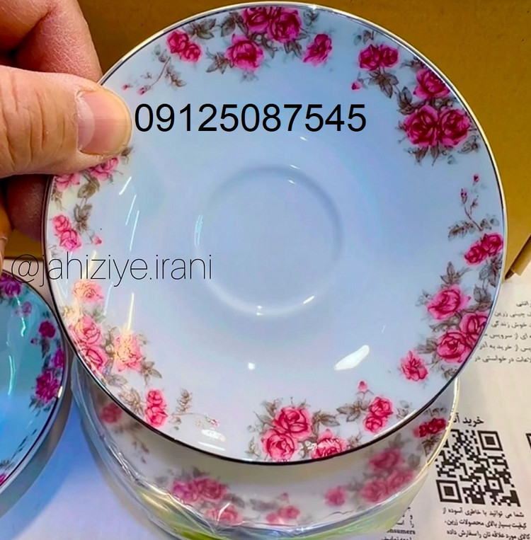 نعلبکی زیر استکانی گلسرخی آران برند چینی زرین بسته 6 عددی