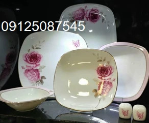 سوپخوری , ظرف سالاد , دیس , بشقاب غذاخوری , بشقاب خورشخوری , پیشدستی , قوری چایخوری , فنجان , نعلبکی , قندان , شکرریز , نمکپاش و فلفلپاش , لیوان
