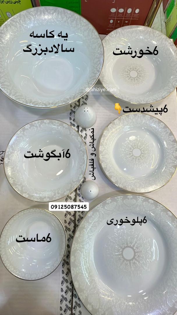 سرویس 6 نفره جدید 35پارچه چینی زرین پیکره شهرزاد مدل سریر سپید