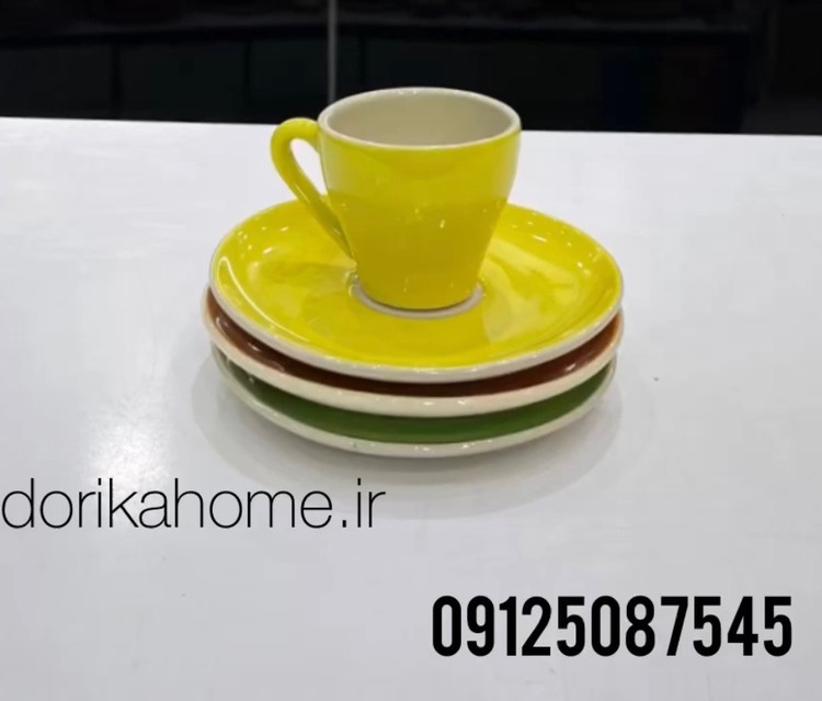 فنجان نعلبکی قهوه خوری رنگی دوریکا طرح تکرنگ