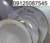اقلام سرویس : سالادخوری , دیس , بشقاب غذاخوری , بشقاب خورشخوری , پیشدستی , نمکپاش و فلفلپاش