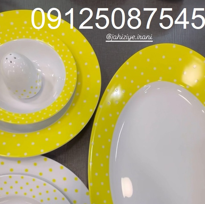 سرویس غذاخوری 28 پارچه چینی زرین ایران سری ایتالیا اف 28 مدل اسپاتی زرد