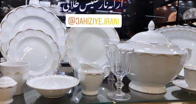 سوپخوری , ظرف سالاد , دیس , بشقاب غذاخوری , بشقاب خورشخوری , پیشدستی , قوری چایخوری , فنجان , نعلبکی , قندان , شکرریز , نمکپاش و فلفلپاش , پیاله , لیوان