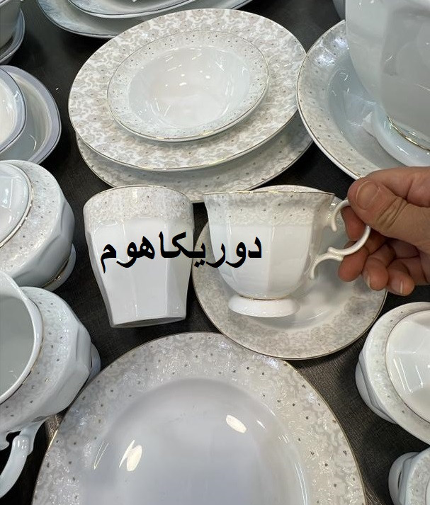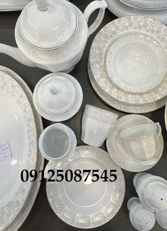سوپخوری , ظرف سالاد , دیس , بشقاب غذاخوری , بشقاب خورشخوری , پیشدستی , قوری چایخوری , فنجان , نعلبکی , قندان , شکرریز , نمکپاش و فلفلپاش , پیاله , لیوان