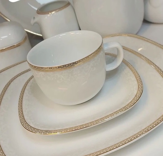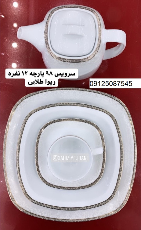 سرویس غذاخوری 98 پارچه چینی زرین مدل کواترو ریواطلایی