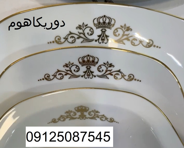طراحی زیبا با جزئیات دقیق، لبههای دکورشده با طلا یا پلاتین در پس زمینه سفید و ا استفاده از چینی با کیفیت بالا