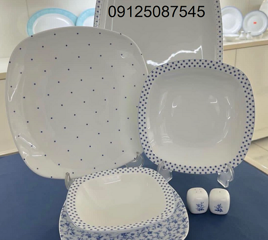 اقلام سرویس : دیس , بشقاب غذاخوری , بشقاب خورشخوری , پیشدستی , نمکپاش و فلفلپاش , پیاله