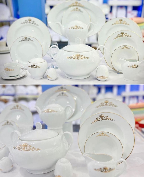 سرویس کامل غداخوری و چایخوری 12 نفره 102 پارچه چینی زرین مدل ایتالیااف کوئین طلایی