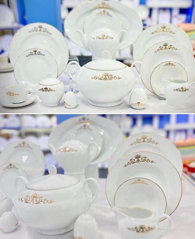 اقلام سرویس : سوپخوری , کاسه , ظرف سالاد , سالادخوری , دیس , بشقاب غذاخوری , بشقاب خورشخوری , پیشدستی , قوری چایخوری , فنجان , نعلبکی , قندان , شکرریز , نمکپاش و فلفلپاش , پیاله , ظرف سس